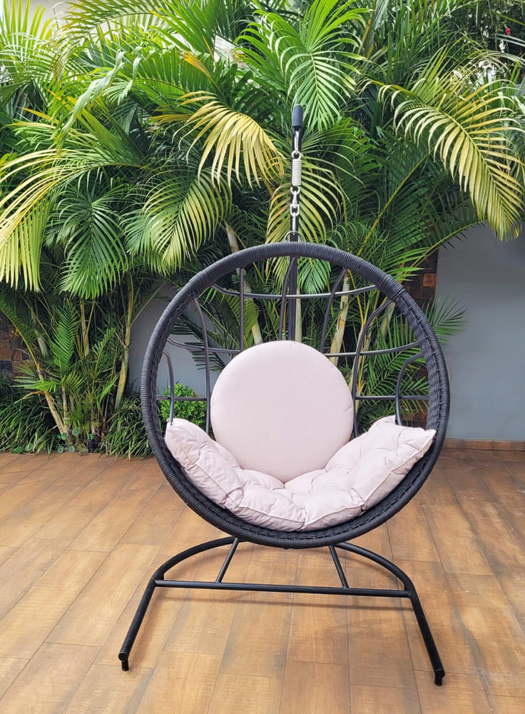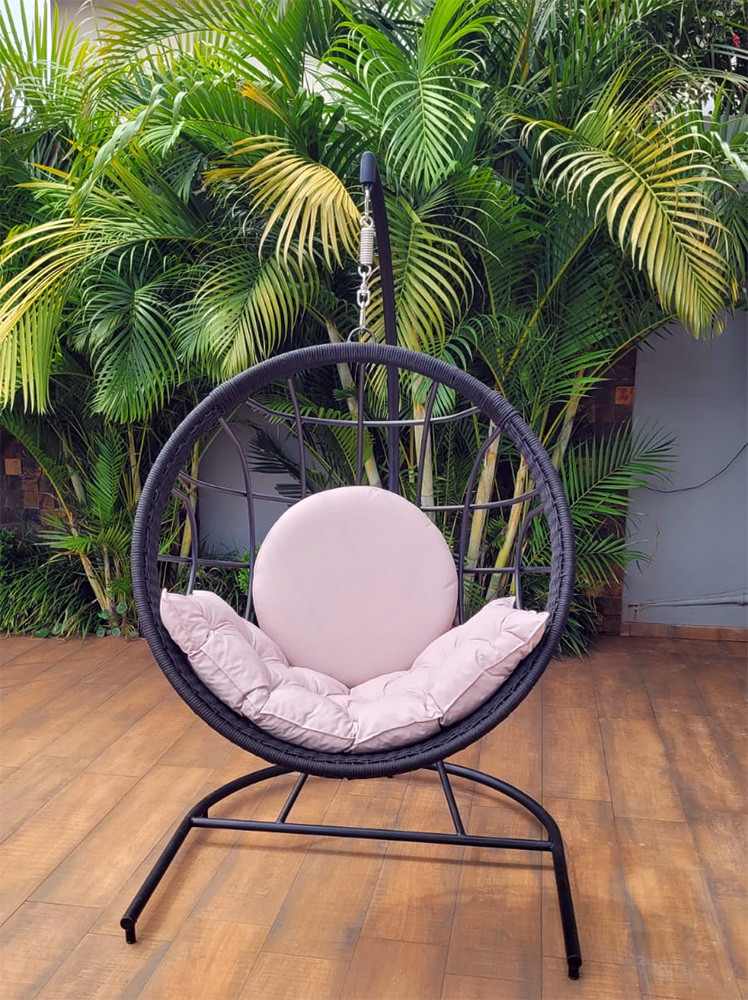 O Balanço Suspenso Lua Cheia possui estruturas reforçadas fabricada em aço;