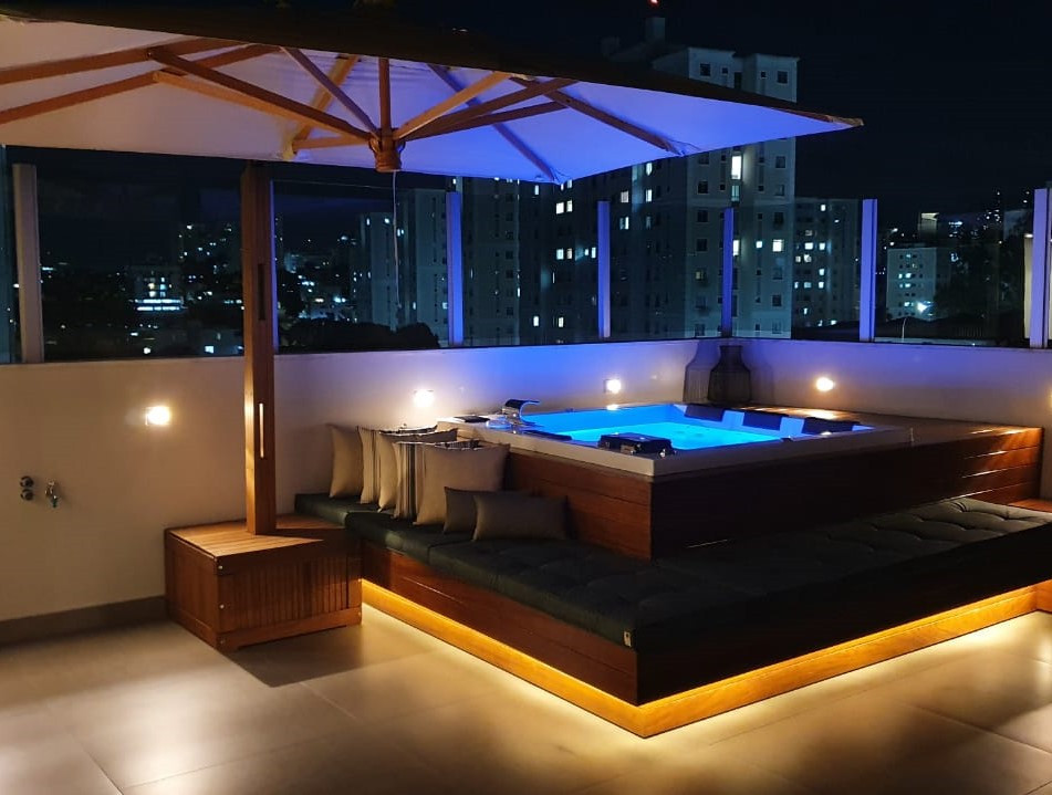 Por sua robustez e visual imponente, o ombrelone lateral Premium giratório com floreira é uma excelente opção para quem busca grandes áreas sombreadas por um único ombrelone;