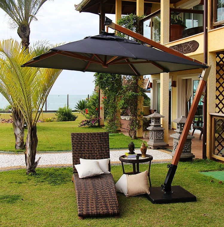 Por sua robustez e visual imponente, o ombrelone lateral slim giratório é uma excelente opção para quem busca grandes áreas sombreadas por um único ombrelone;